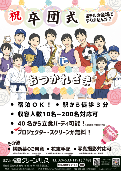 【宴会】祝卒团式 ホテルの会場でやりませんか?