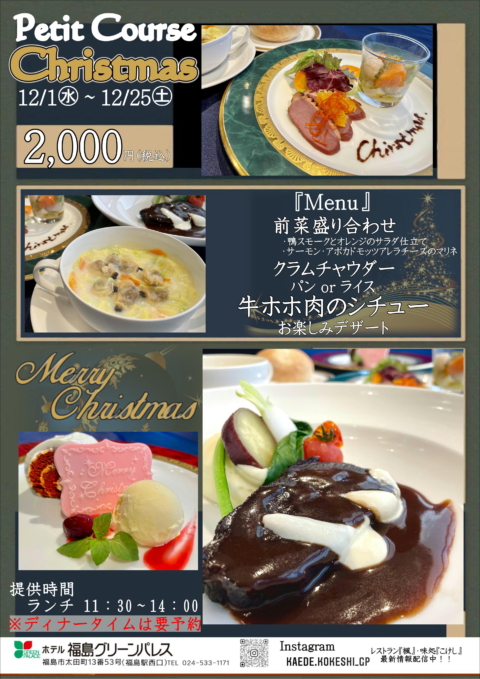 当店人気のプチコースが、クリスマスバージョンで登場!!