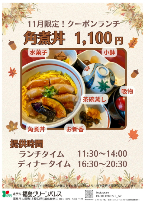 毎年恒例人気企画!現在開催中の秋のランチでクーポン!