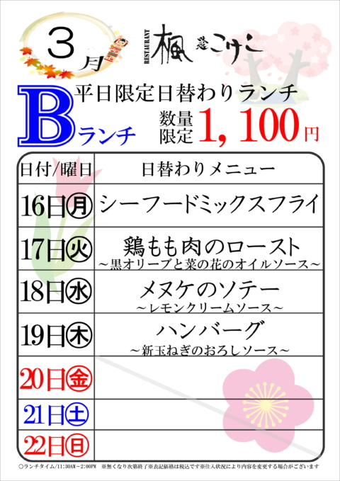 3月の日替わりランチ