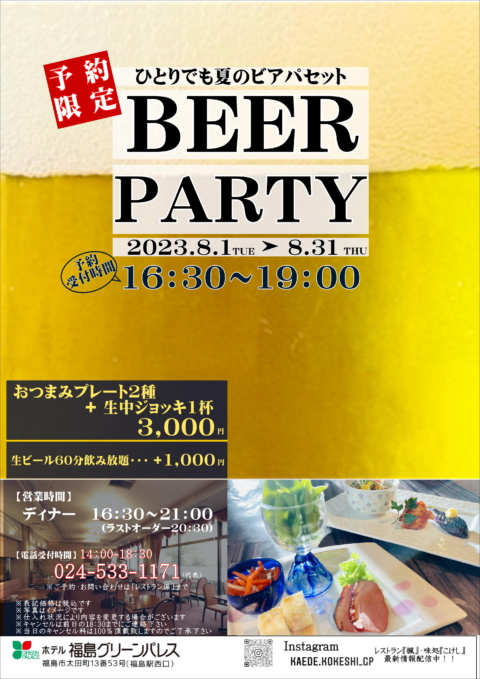 【電話番号】代表024-533-1171 レストラン係まで! 【電話受付時間】14:00-18:30